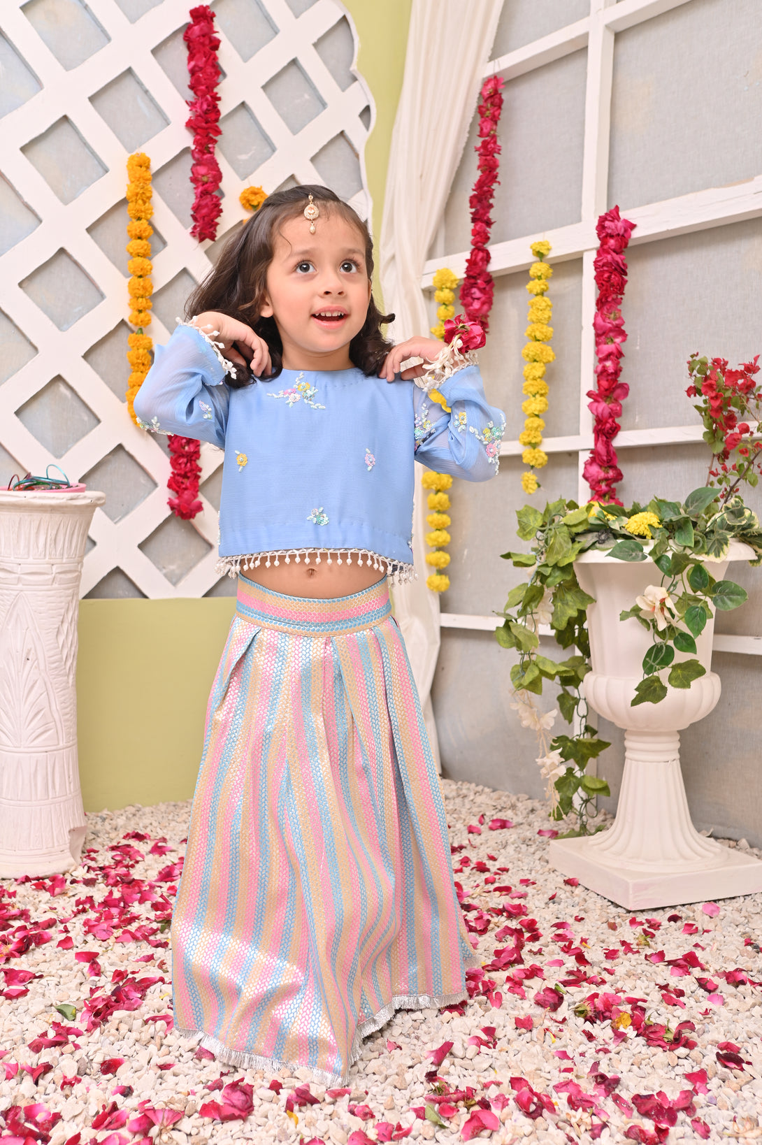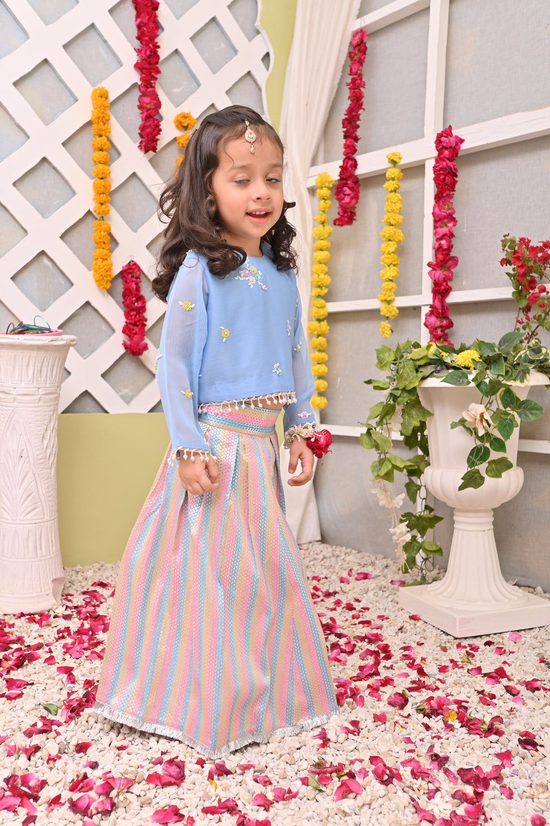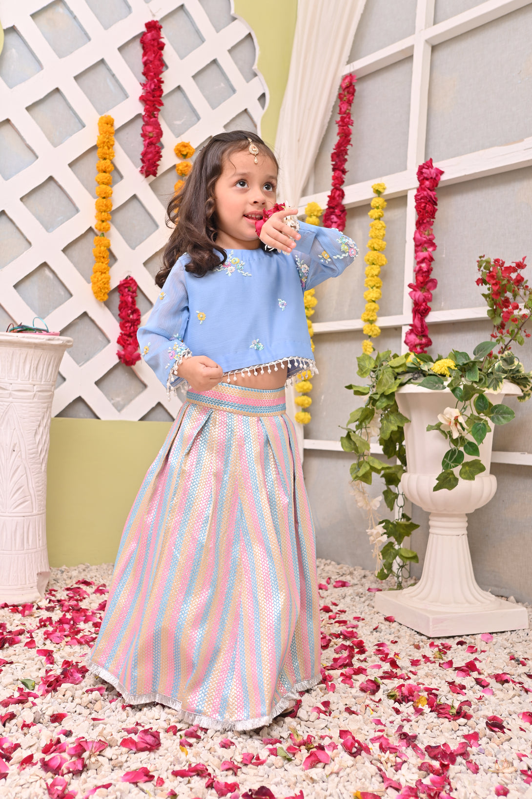 Elevate your traditional wardrobe with our exquisite "Riwayat" ensemble featuring a multi-colored lehnga in vibrant pastel hues. The centerpiece is a meticulously hand-embroidered chiffon choli, showcasing exceptional craftsmanship. Each stitch reflects authentic artisanal techniques, creating a sophisticated silhouette perfect for special occasions while honoring cultural heritage.