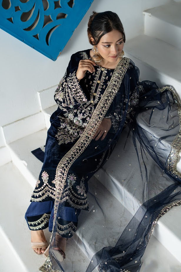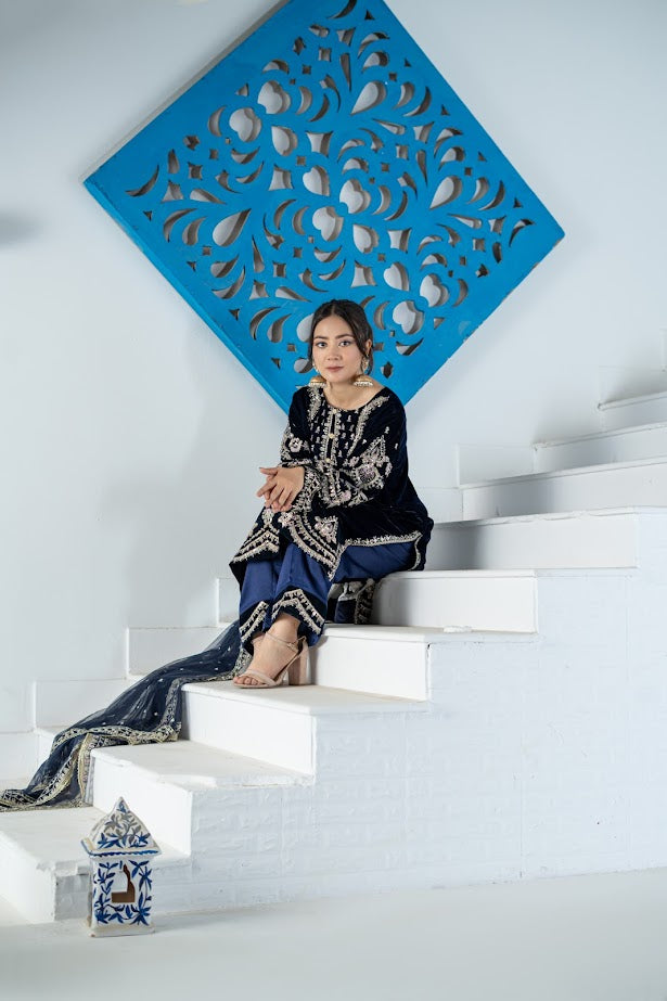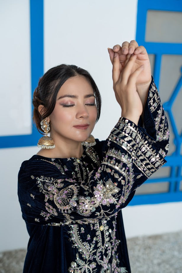 Fabric: Rich navy blue velvet